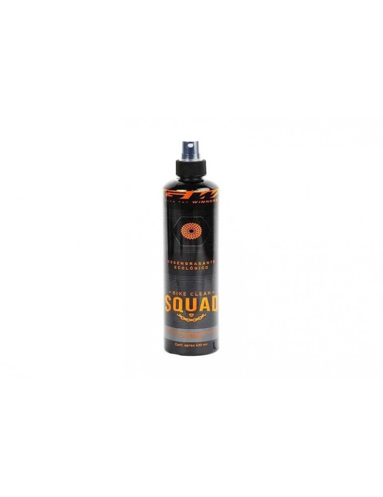 GW BIKE CLEAN SQUAD - Desengrasante Ecológico es una exclusiva fórmula desarrollada con pH balanceado, combinando tensoactivos y agentes humectantes biodegradables que eliminan de forma rápida y segura depósitos de aceite, grasa, suciedad y todos los contaminantes acumulados en el metal, plástico, caucho, etc. Se puede utilizar en todo tipo de cadenas, placas, componentes y rodamientos. No contiene solventes y no ataca la pintura. Trabaja a temperatura ambiente y puede utilizarse en equipos de limpieza a alta presión, produciendo espuma controlada.